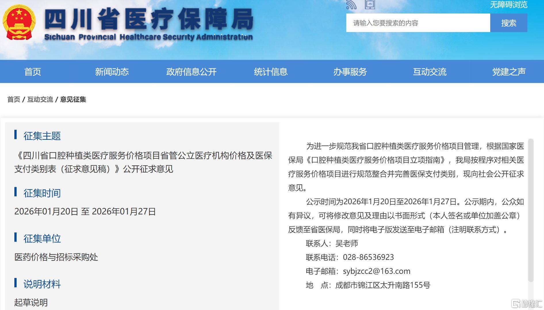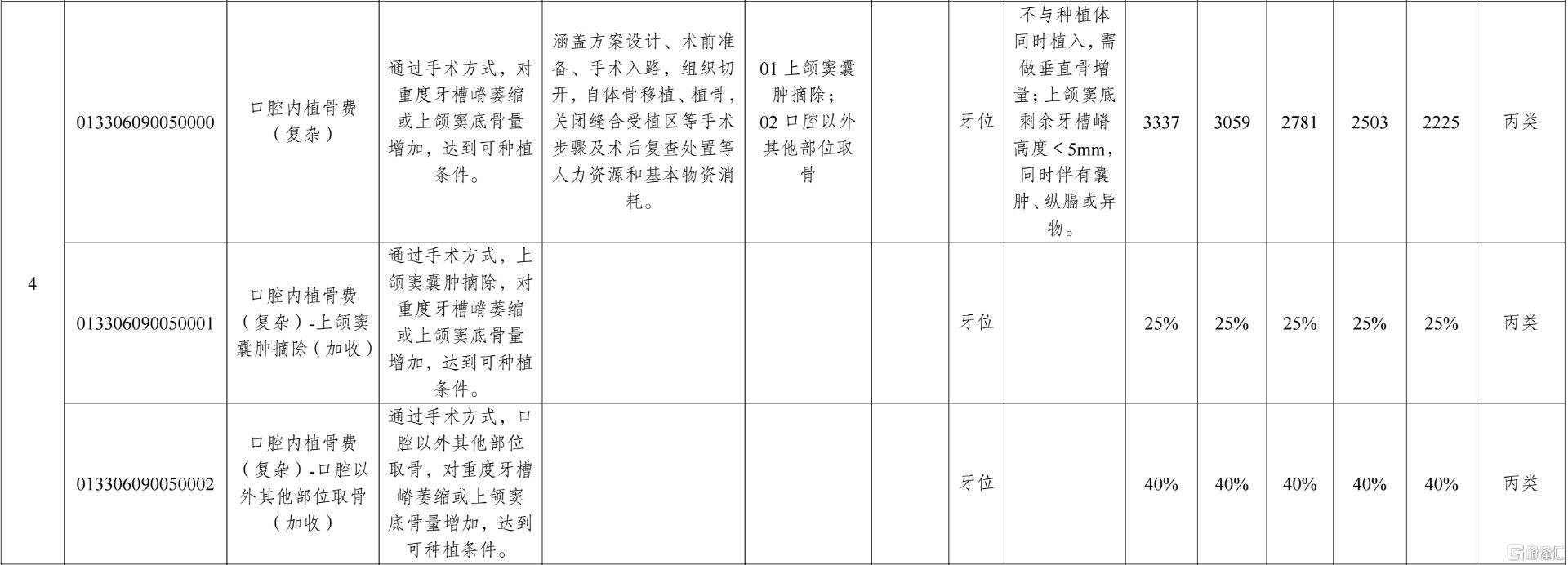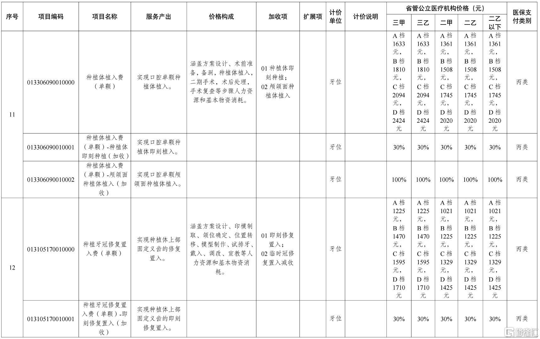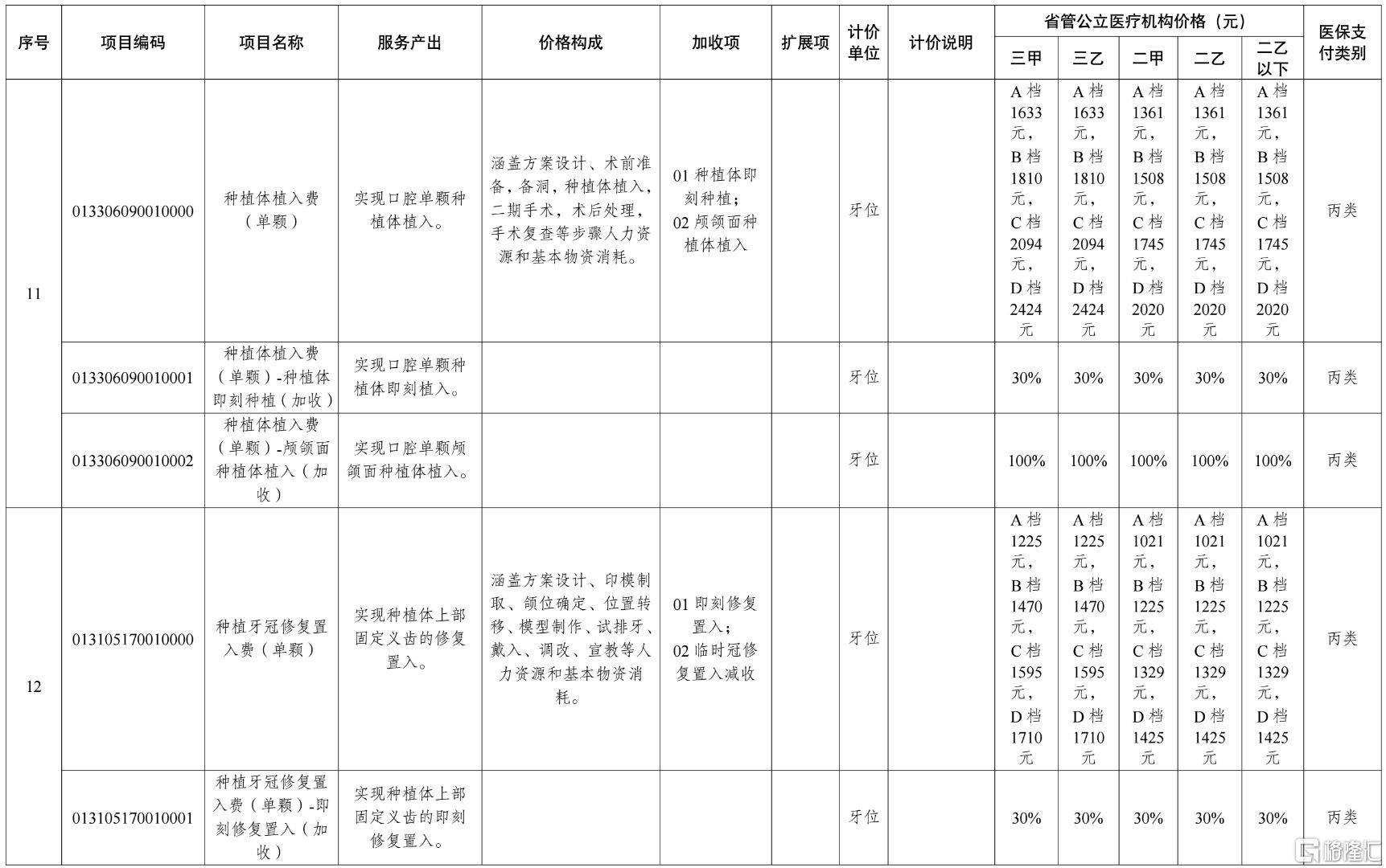 *图源:《四川省口腔种植类医疗服务价格项目省管公立医疗机构价格及医保支付类别表(征求意见稿)》